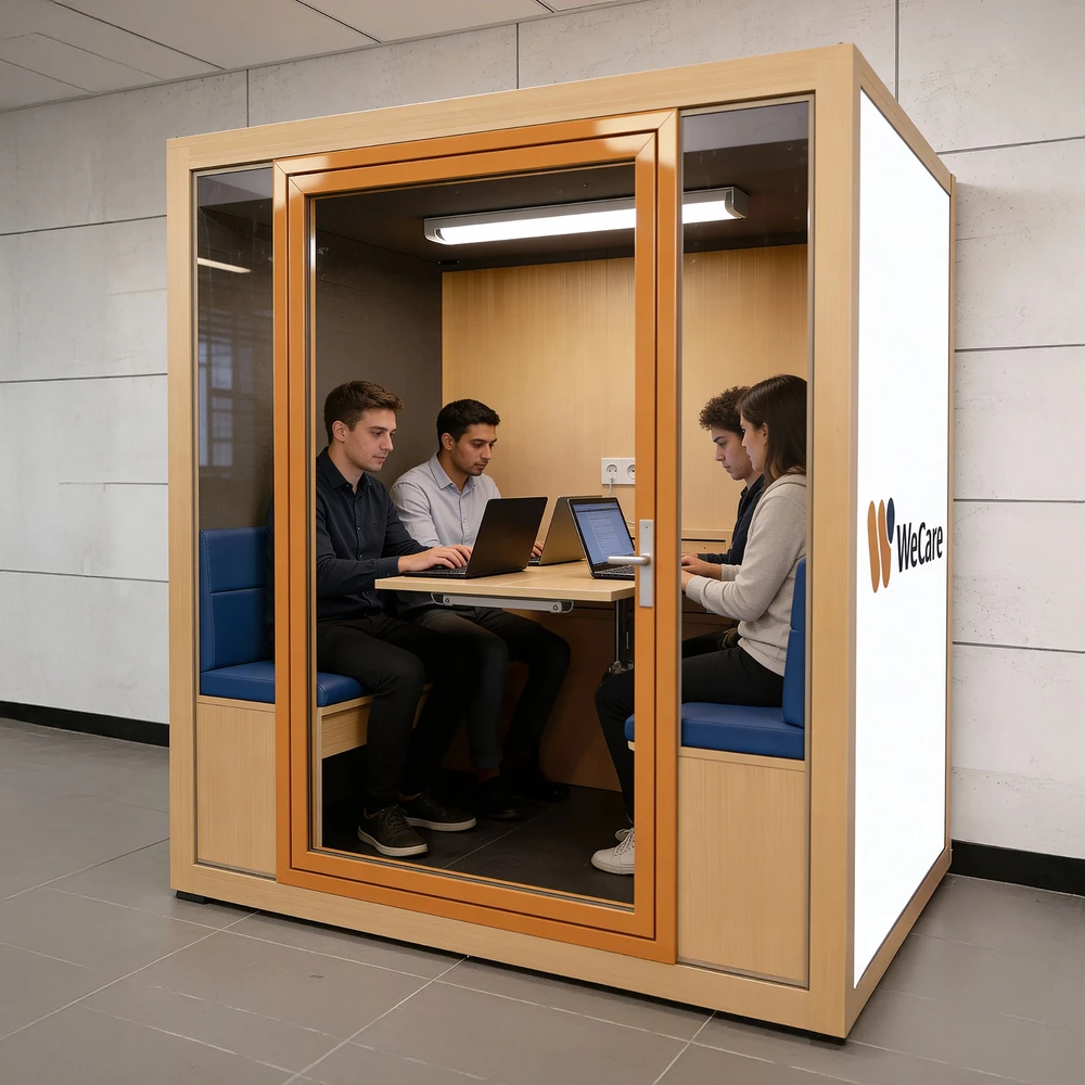 Its architectural enclosure delivers effective sound insulation, reducing external noise and enhancing speech clarity while creating a focused and distraction-free meeting space without the need for permanent construction.